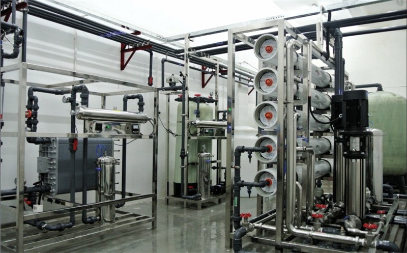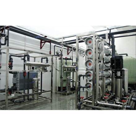 (2)原水箱→原水泵→超濾裝置→超濾水箱→雙級反滲透膜組→RO純水箱→RO純水泵→紫外殺菌器→精密過(guò)濾器→EDI裝置→EDI氮封水箱→EDI純水泵→ TOC降解儀→核級拋光混床→微孔過(guò)濾器→用水點(diǎn)